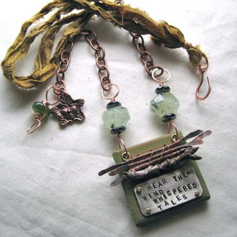 Cedar, nickel, twigs, micro fasteners, wire, silk, resin, copper, gemstones.