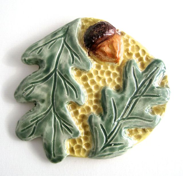 My tiles are original designs, often with a mythological or art historical reference. I sculpt and carve the original in clay and make a plaster press mold. Having a mold allows me to streamline the process and reproduce my design in multiples. Each one is hand painted with a variety of glazes and underglazes; each one is unique. They are ready to hang, bringing a little myth and symbolism to your everyday.